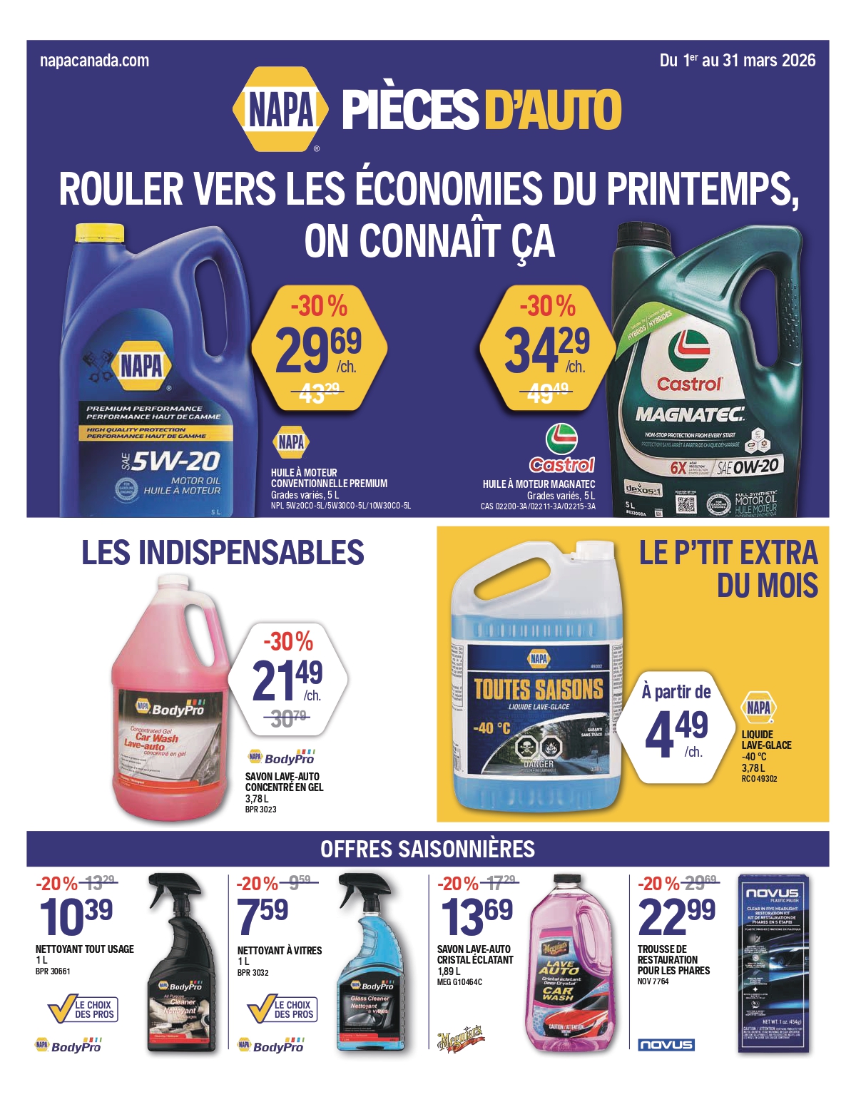 L’outil essentiel pour nos clients-bricoleurs : notre circulaire. Vous y trouverez une multitude de promotions sur l'outillage et l'équipement, sur les produits de peinture, les produits et accessoires d'entretien de carrosserie, etc. Tout pour l'entretien de votre véhicule, disponible à votre magasin NAPA Pièces d'auto!